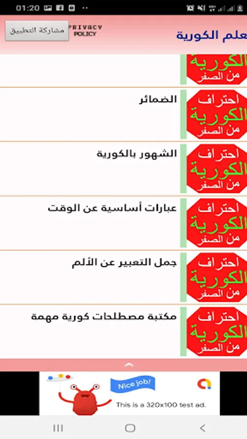 تعلم اللغة الكورية بالعربية برنامج يساعدك في تكلم اللغه الكوريه المشهورة بالإضافة إلى جمل اساسية في الكورية و الأسماء و الألوان و بعض القواعد التي تساعدك ترجمة كورية الى العربية.