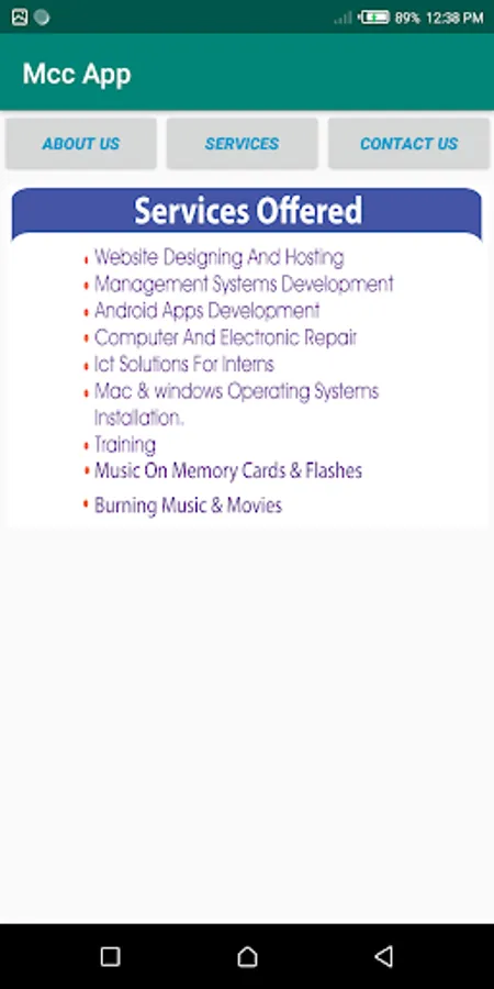 MCC Tech App Screenshots
