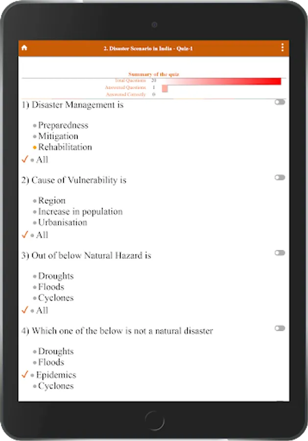 App is designed such away it covers key Highlights of Disaster Management and the Exercises on Disaster Management makes each student an expert on Disaster Management.