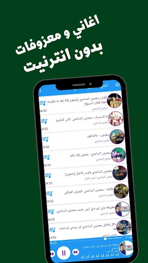The application contains new songs, singer Saadoun Al Saadi, without the net