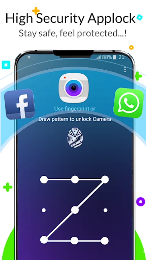 App Lock allows you to lock apps and protect your apps using Pattern and Applock Pattern is a free applock for android and free app lock security tool which helps you to protect your android phone from annoying. AppLock pattern lock screen can lock your photos, gallery and messages from nosy friends. App Lock Best secret AppLock can hide all android app and make protection of personal privacy with locked app complex password.