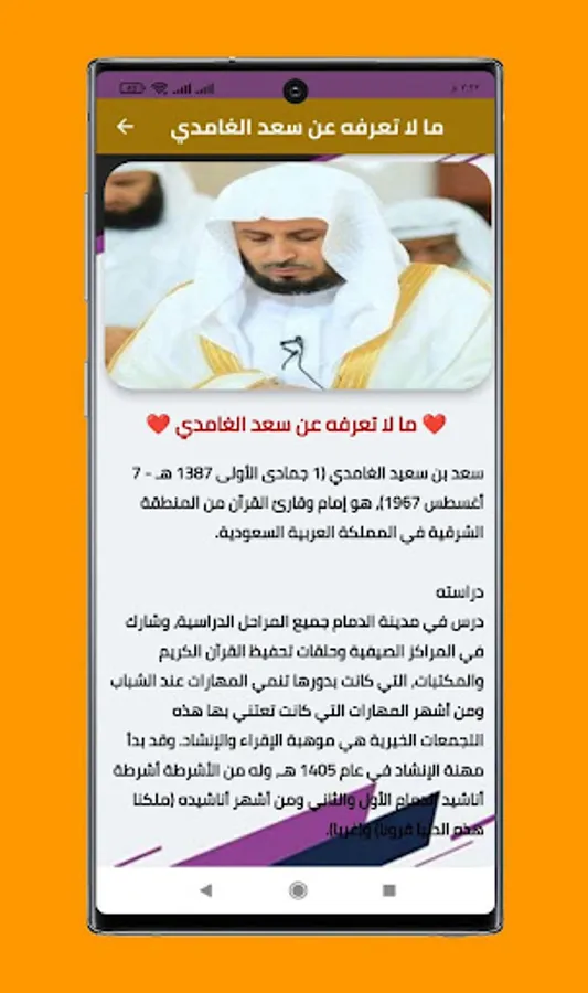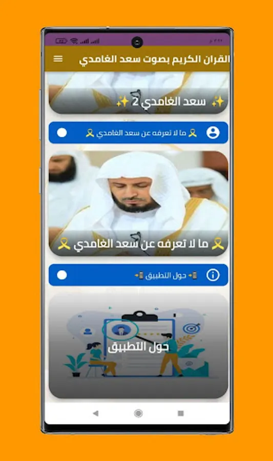 The application of the Noble Qur’an with the voice of Saad Al-Ghamdi allows listening to all the surahs of the Noble Qur’an without the need for the Internet through your mobile phone or tablet with ease and ease.