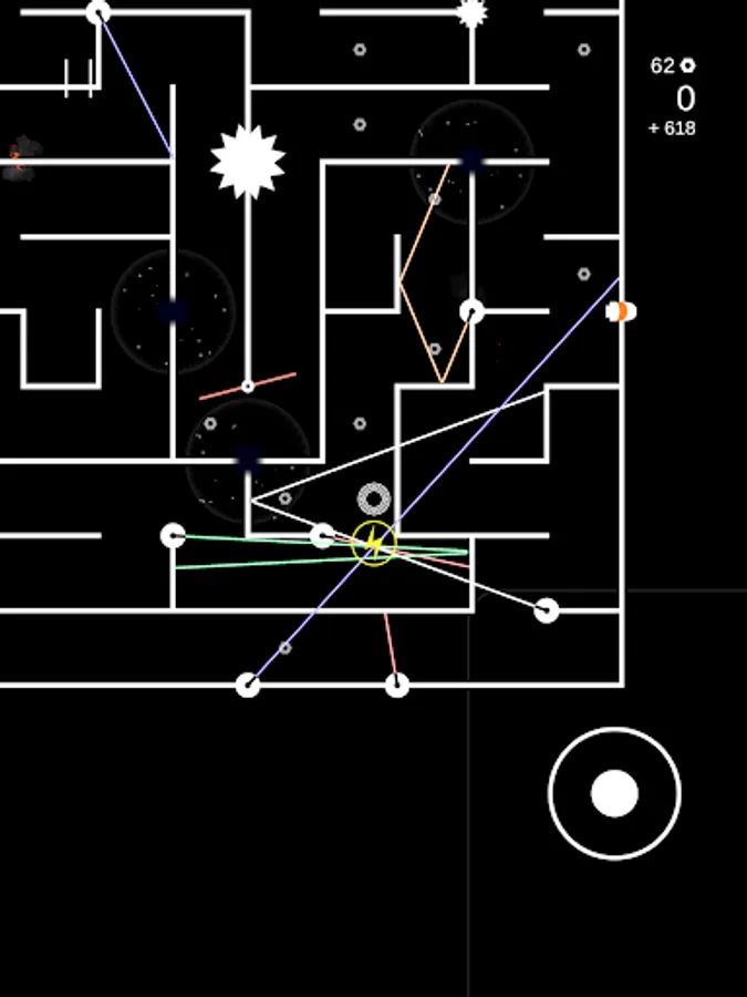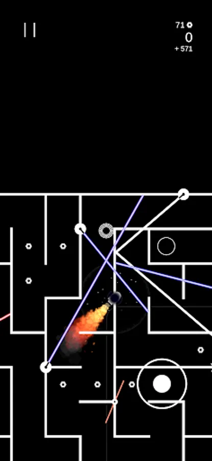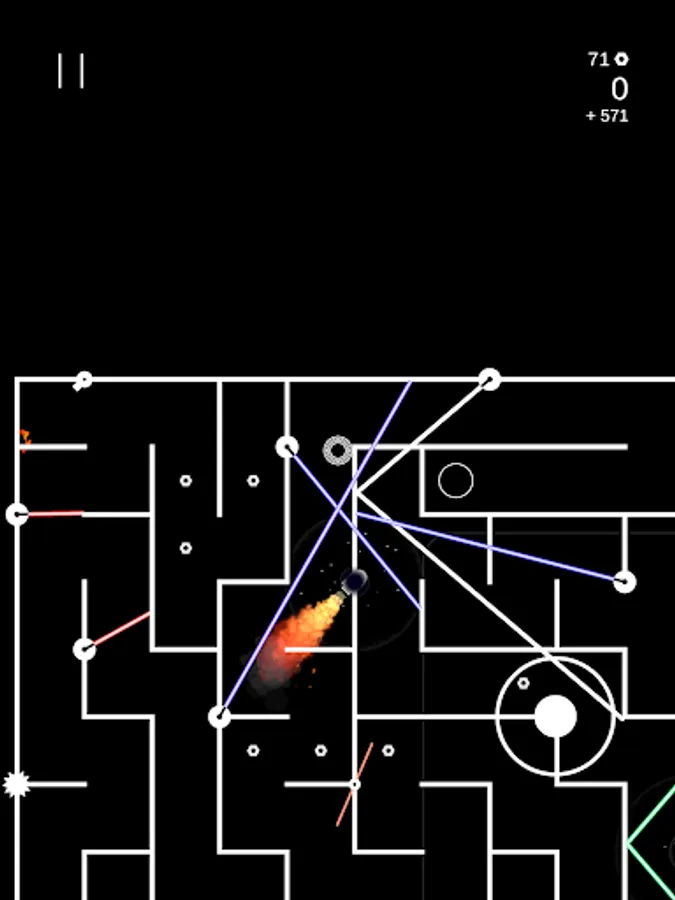 This maze game features randomly generated, cool yet challenging obstacles. These obstacles include easily avoidable cogs, various lasers aimed at the ball, periodic lightning strikes at the ball's position, and black holes that pull the ball. You must navigate the maze and escape these obstacles.