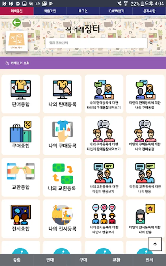 *** 기존 전자상거래플랫폼이 부과하는 비싼 수수료체계에서 벗어나 완전한 무료로 상호 직거래를 할 수 있는 정보를 통해 판매자와 구매자 모두에게 이익이 되는 경제생활을 만듦. 본 앱을 통해 모든 경제주체는 판매.구매.전시.광고.홍보에 관한 정보를 올리거나 공유할 수 있고 구체적인 상품 뿐 만아니라, 각종 용역이나 서비스, 기타 유무형의 모든 상품을 등록할 수 있음.