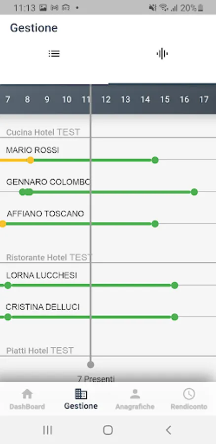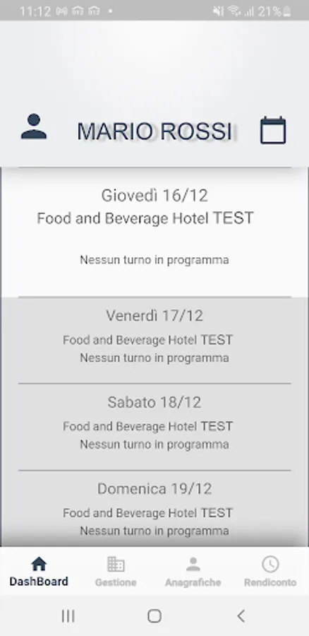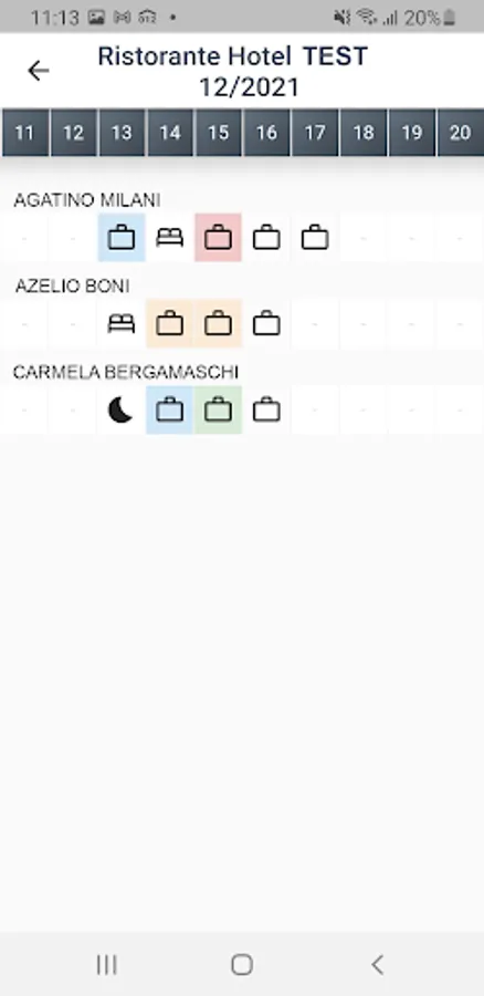 The user can consult his attendance / work program for the week, moreover, if a manager, he can check in real time the regularity of attendances, the lack of some of them, those present and absent, and can make changes to the program of attendance. work (and consequently to the planned attendance program) according to unexpected needs.