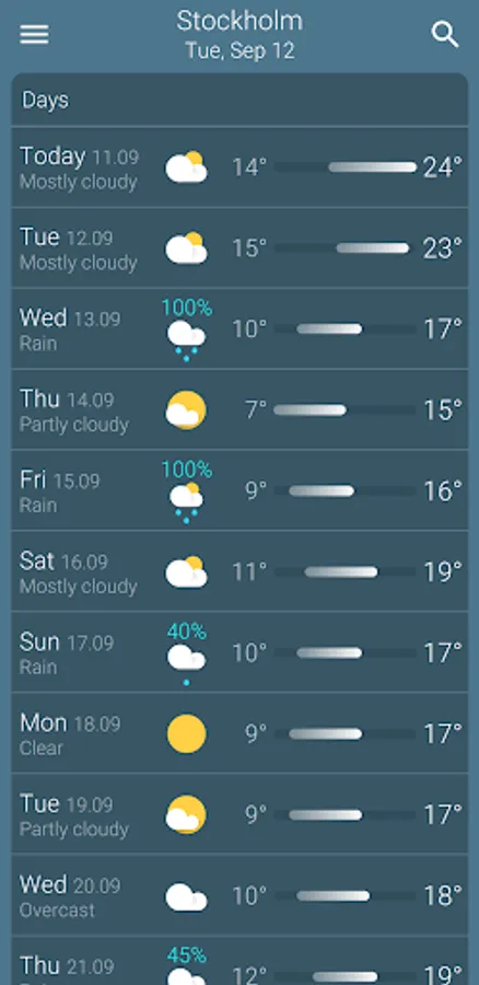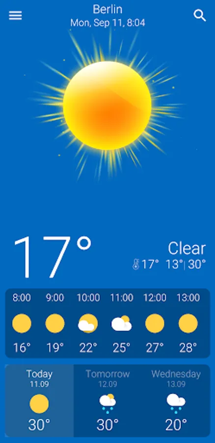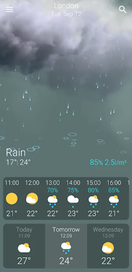 - Scroll down for details: wind, pressure, sunrise/sunset, UV, humidity and dew point.