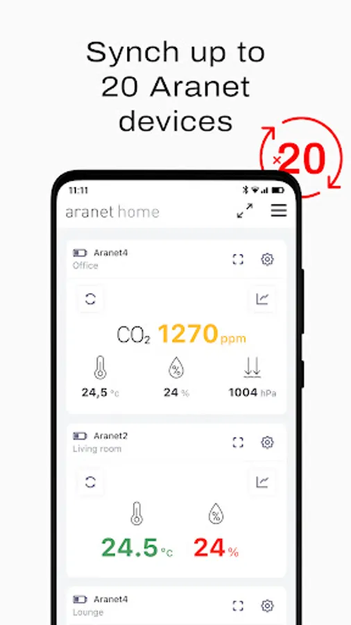 Download the Aranet Home app and connect your smartphone to Aranet devices in order to: