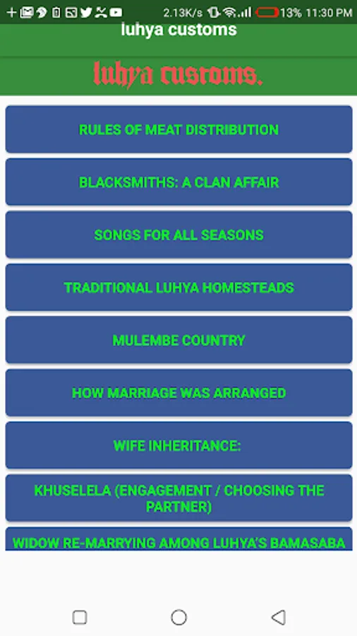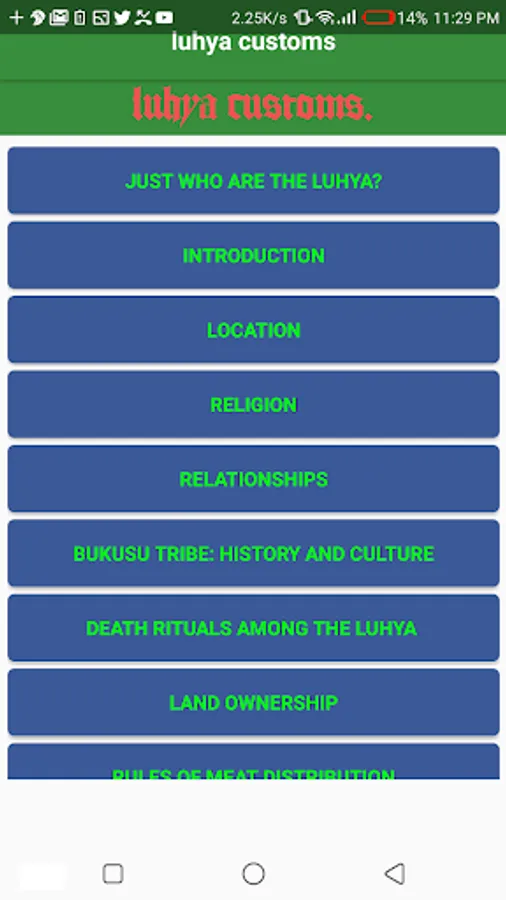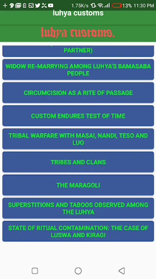 The app has a lot of information about the traditional customs ,religion and Taboos of the Luhya clanof Kenya.