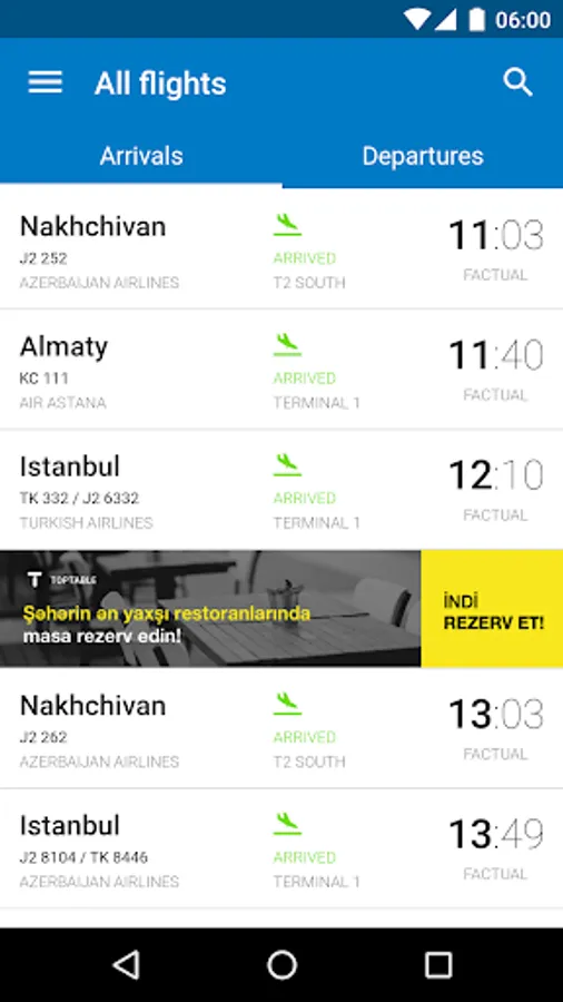 Exclusive mobile app for tourists and citizens of Baku city, all flights statuses are in real-time provided by GHC (Ground Handling Company).