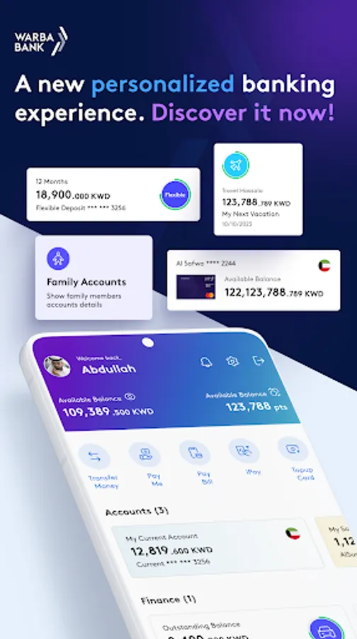 Warba Bank is excited to introduce its new app, which puts customers at the forefront of its attention. The app offers a personalized experience, with new home screen views and controls allowing customers to access all their banking products and services with just a few taps. These innovative features redefine the customer-focused experience for financial services.