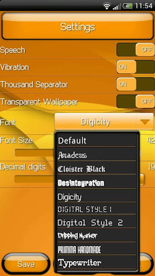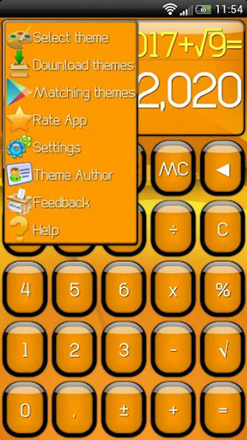 Jelly Orange Theme for Skinnable Calculator, change skin, wallpaper and font. Themes for the Skinnable Calculator can be downloaded from the Play Store.