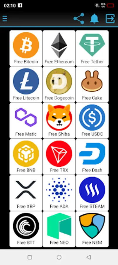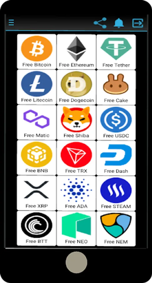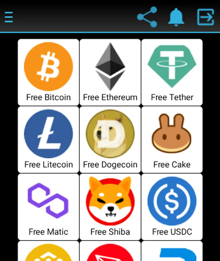 - Earn cryptocurrencies such as Bitcoin, Ethereum, Bitcoin-Cash, USD Coin, Solana, Shiba inu, Cardano, Dogecoin, Litecoin, Tron, Matic, Tether, Dashcoin, Stellar, Digibyte, Steam, Cardano...