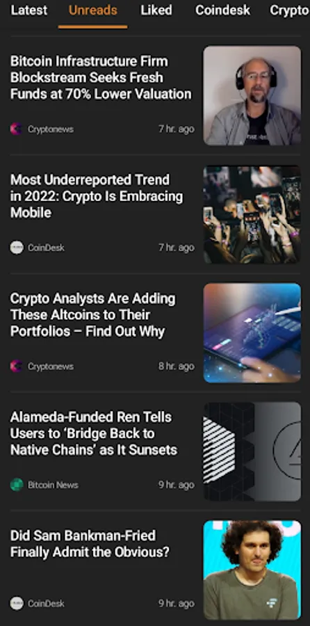 It includes a news and article aggregator, a crypto market monitoring function... Users also have the option to choose the main application screen: News.