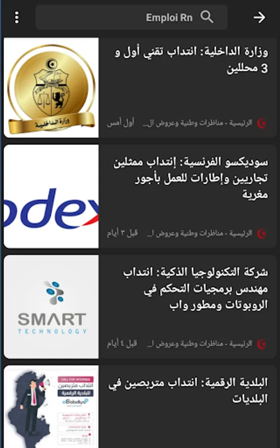 The application of job offers in Tunisia provides you with all job offers in various fields. You can search for jobs that suit you through different categories or through keywords. You can also create alerts to get notified when new jobs matching your criteria are posted.