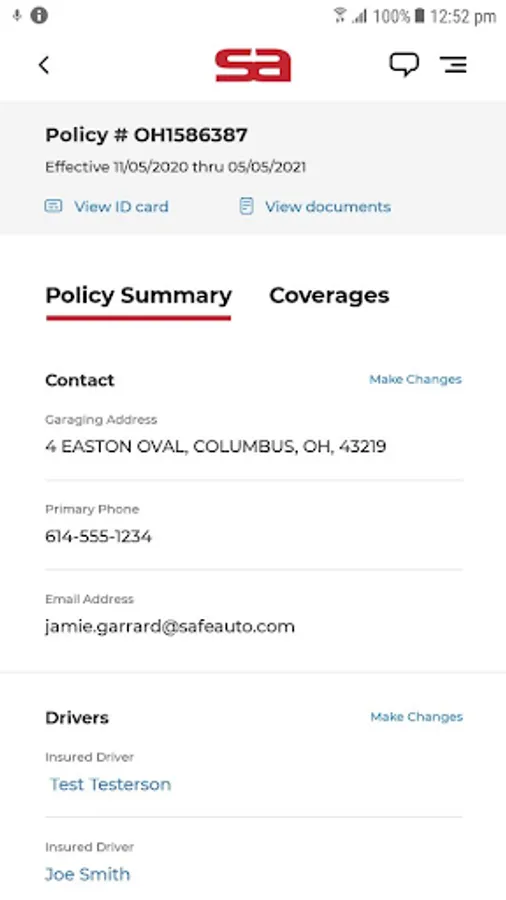 * Call SafeAuto with the touch of a button and talk to one of our representatives, available 24/7 to help with whatever you need.