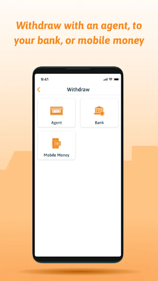 You can withdraw money to your MTN or Airtel mobile number, bank or with an agent at the most affordable rates. To find an agent, tap the find agent icon on your app, and you will see the agents within your location.