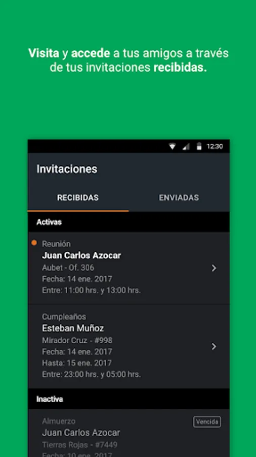 Safecard® send invitations via phone to your family, friends and services through a digital invitation that allows them to easily enter the day and time that you are defined.