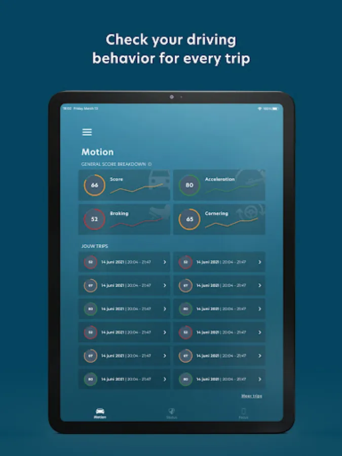 The app has to be running on your phone at all times and Bluetooth Low Energy has to be enabled at all times. The battery cost of the app, however, is minimal and hardly noticeable. When the app is not used correctly, by e.g. turning off Bluetooth, so that you can still use your phone in the car, this is reported to the server, where it is shown in a dashboard to which your fleet manager, lease company or insurance company could have access (depending on your contract).