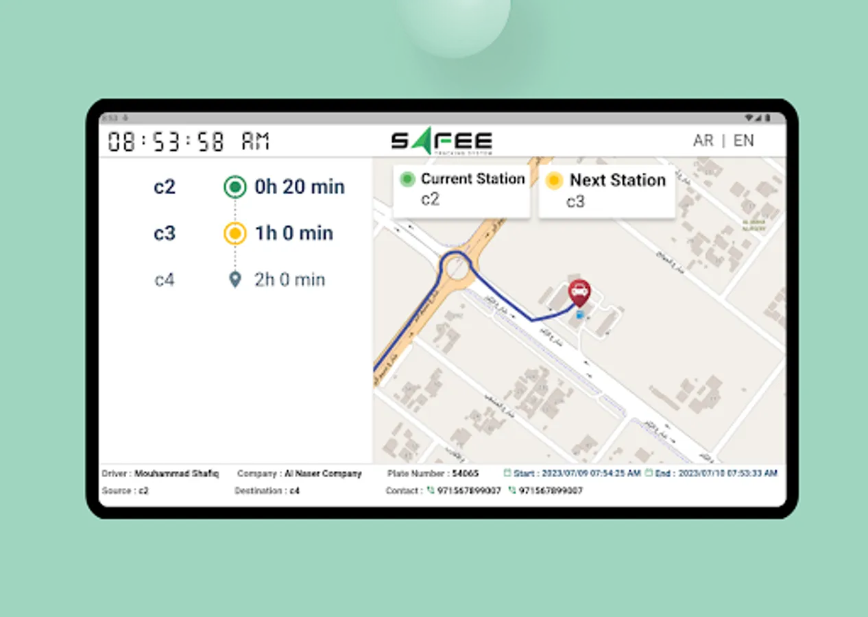 Safee bus application is designed for journey tracking, offering users a user-friendly interface and powerful features to view important details and track their journey.