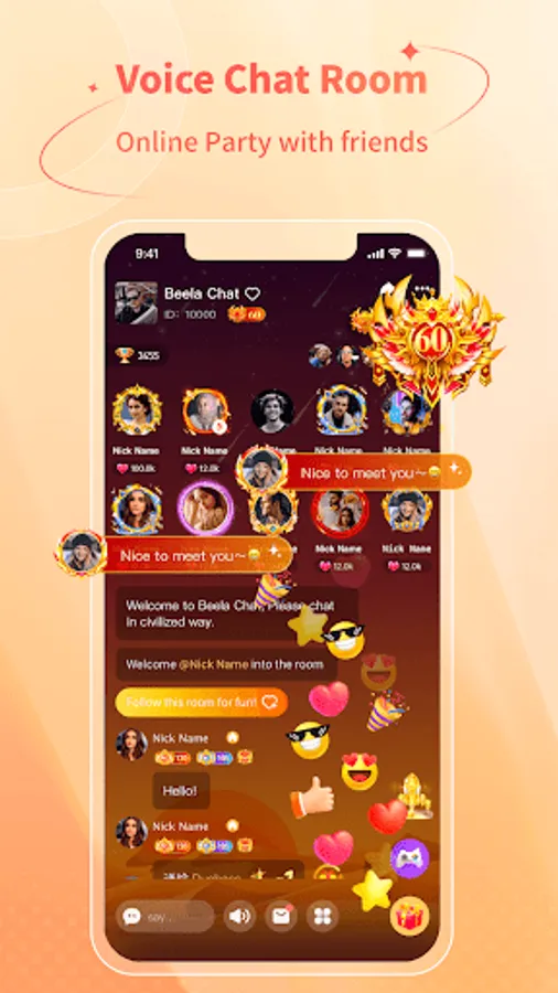 Chat with friends all over the world in voice chat room. Chat about games, life, food, hobby and any topics you like with other. Even can host a party to meet friends.