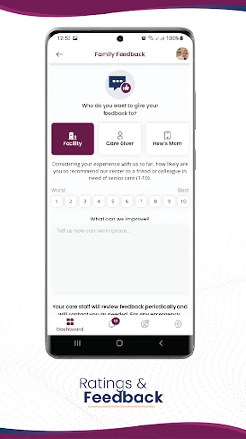 Family Five Star Feedback - rate your loved one’s care center and share your feedback directly with facility management.
