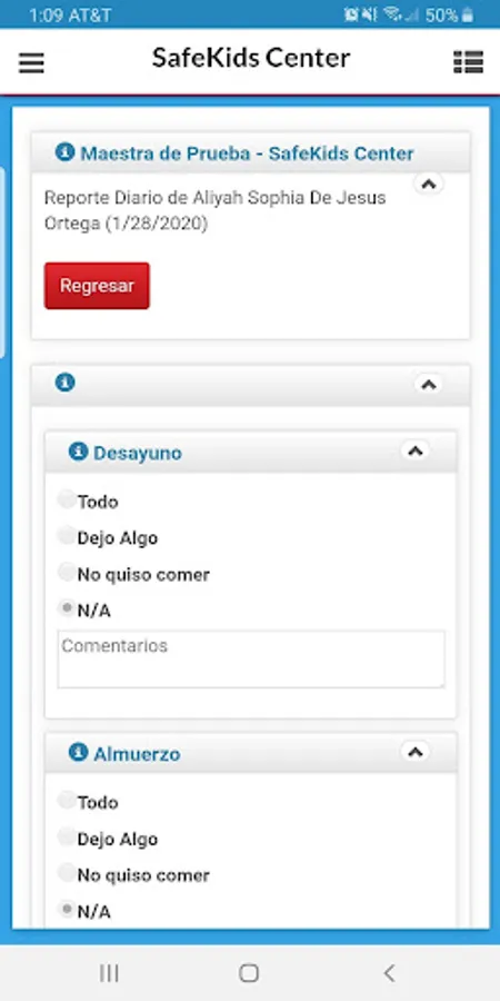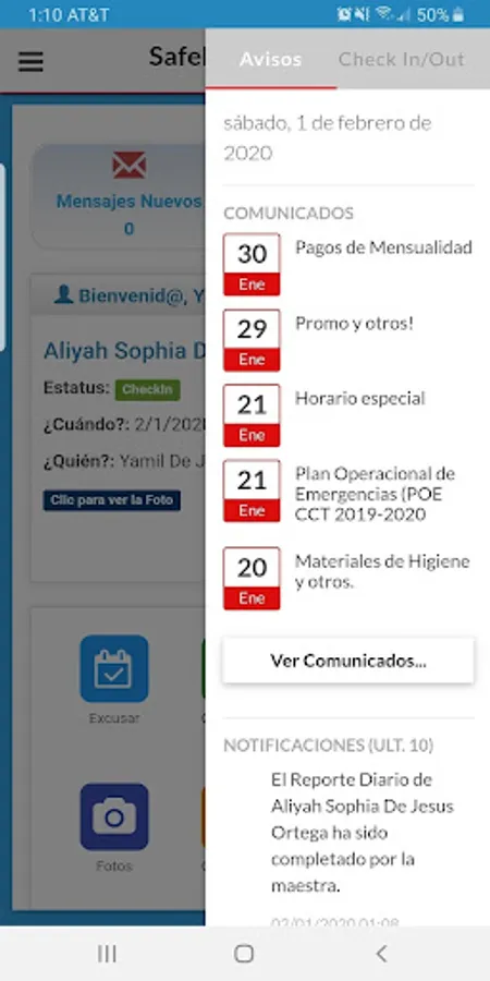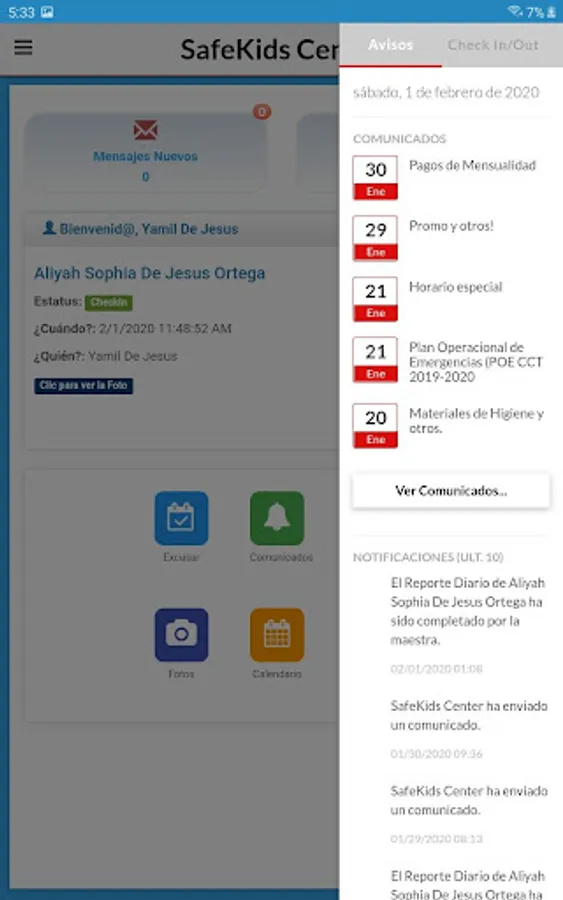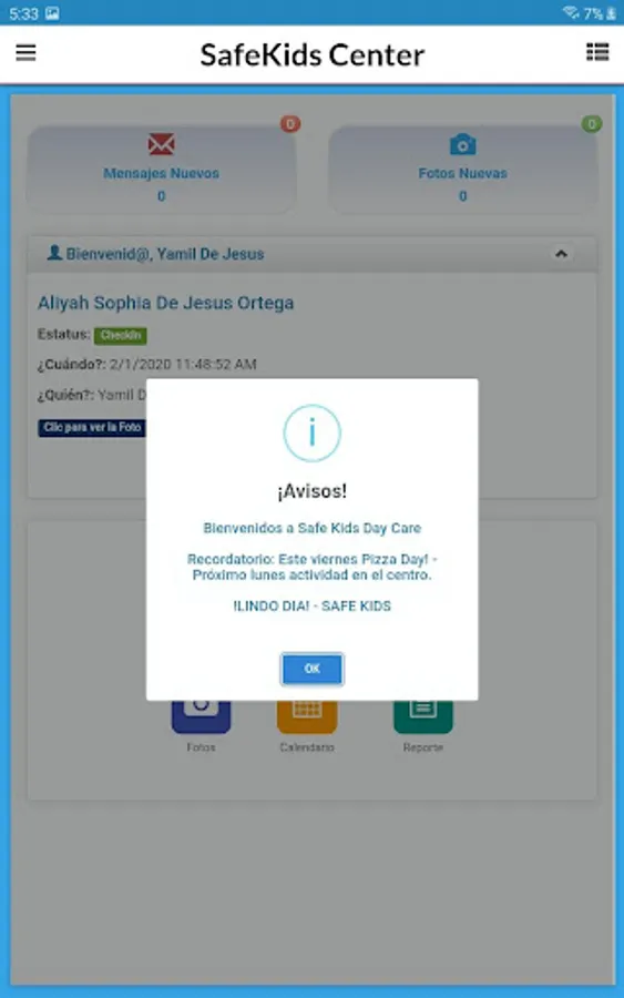 sistema envía notificaciones automáticas, para notificarles a los padres y darles la oportunidad de avisar si por algún motivo no asistirá al centro ese día. En adición le permite anotar los medicamentos del día y añadir alguna nota particular para ese día.