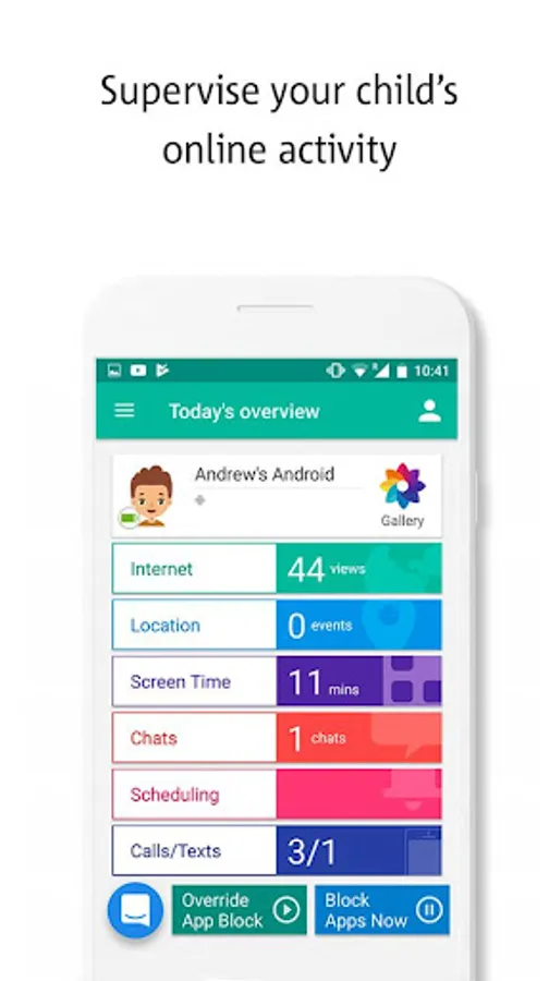 Parental control filters stop your kids from viewing inappropriate sites while our app lets you monitor all your children's activity, screen time, app usage, location, photos and videos by using our parental android app.