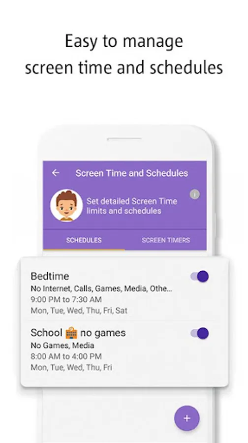 ๐ Full control and monitoring, block games but allow educational apps during school hours.