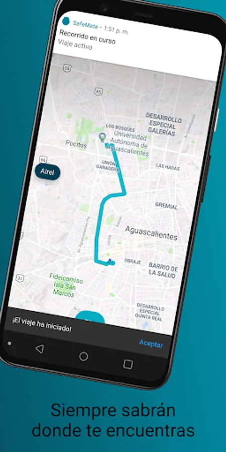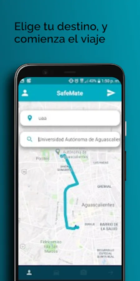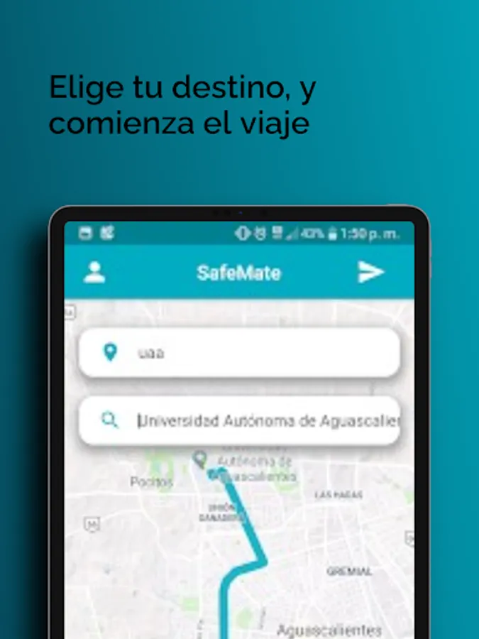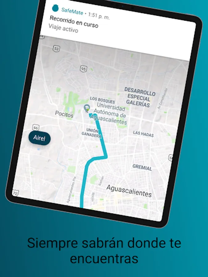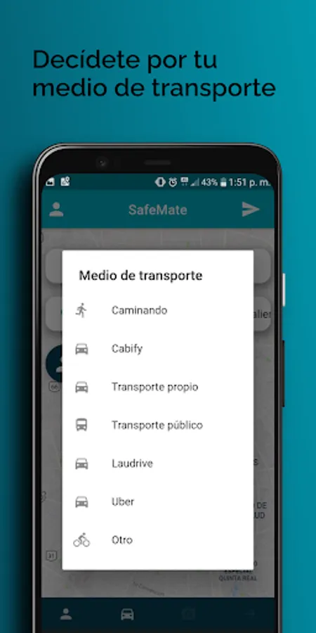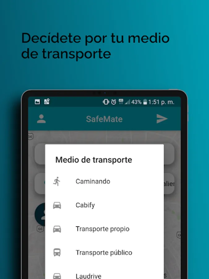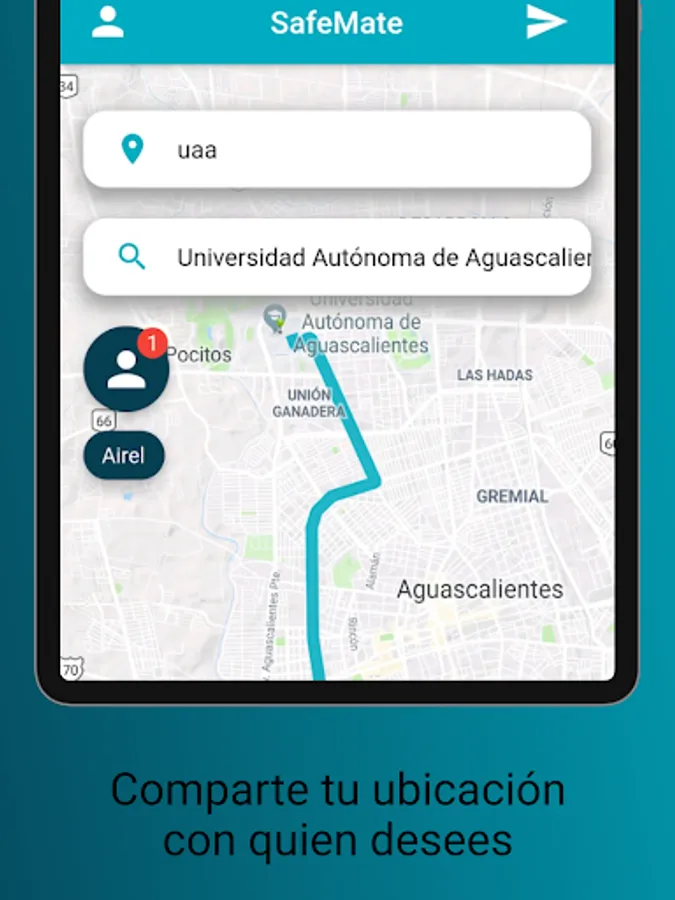 SafeMate® is a mobile application that allows you to keep your family and friends informed about your location in real time while you move from one place to another, you can add all the virtual companions you want, whom we will call Safies and send them a picture of the vehicle, the license plate, the driver or your passenger, in addition to alerting them immediately about any mishap or mishap that occurs during your journey.