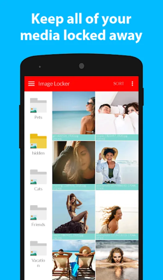 Multiple Folders: You can create an unlimited amount of folders to organize your photos and videos. You can also sort by file name or file size.