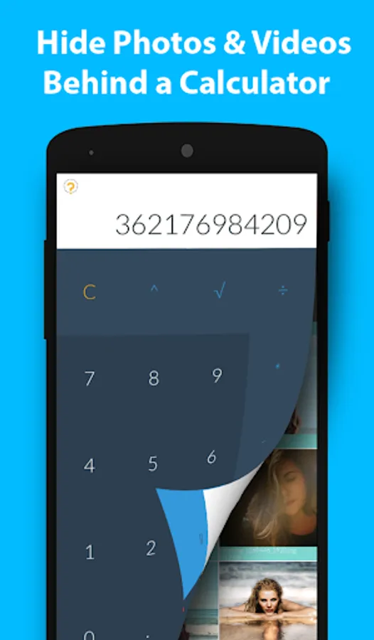The Calculator Photo:Video Vault app hides personal photos, videos and other media files so that you won't have to worry about anyone discovering your private files. Disguised as a working calculator, this hide app will lock your files stored in a secure vault that can only be unlocked with the PIN that you have set.