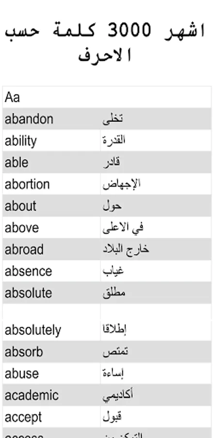 The most famous 3000 English words with Arabic translation