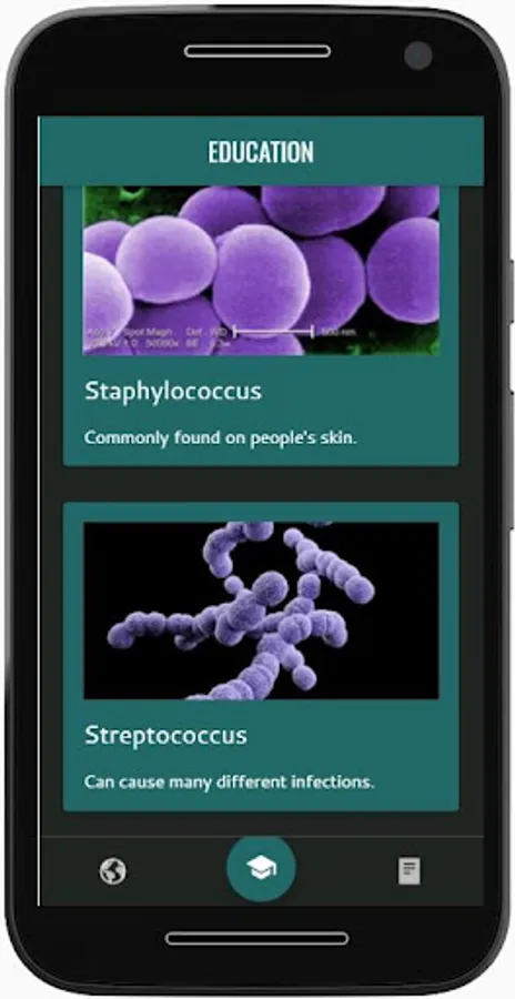 - Geolocation map that allows you to see bacteria before you go into buildings