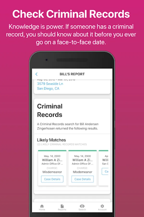 In just five years, reports of sex crimes linked to online dating have risen by 450%. If someone has a violent or disturbing criminal record, you need to know about it before you ever get face-to-face. With unlimited reports, you can make sure your friends and loved ones are dating safely, too.