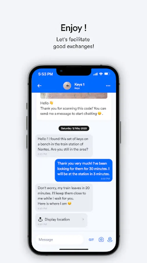 At Ocode, we are developing a new way to communicate without personal data from individuals to individuals and from brand to brand. Our mission is to encourage positive attitudes among individuals by facilitating good exchanges and provoking good actions. To do so, we have developed a solution that allows our users to contact each other without personal data. For example, to return an object found in a few seconds.
