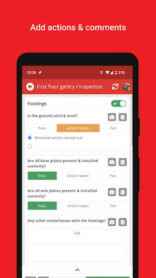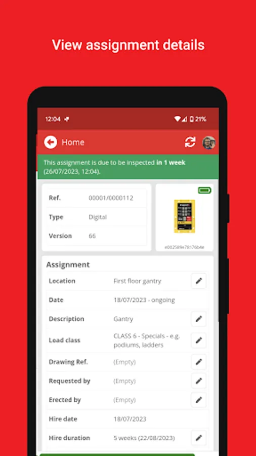 When scanning an Inspect7® device for its weekly inspection, the app provides the user with a simple inspection checklist, including drop-downs and comment boxes that can be filled out easily. By using an Android-based smartphone or tablet, with NFC and the Inspect7® app, inspectors can carry out efficient inspections of the scaffold.