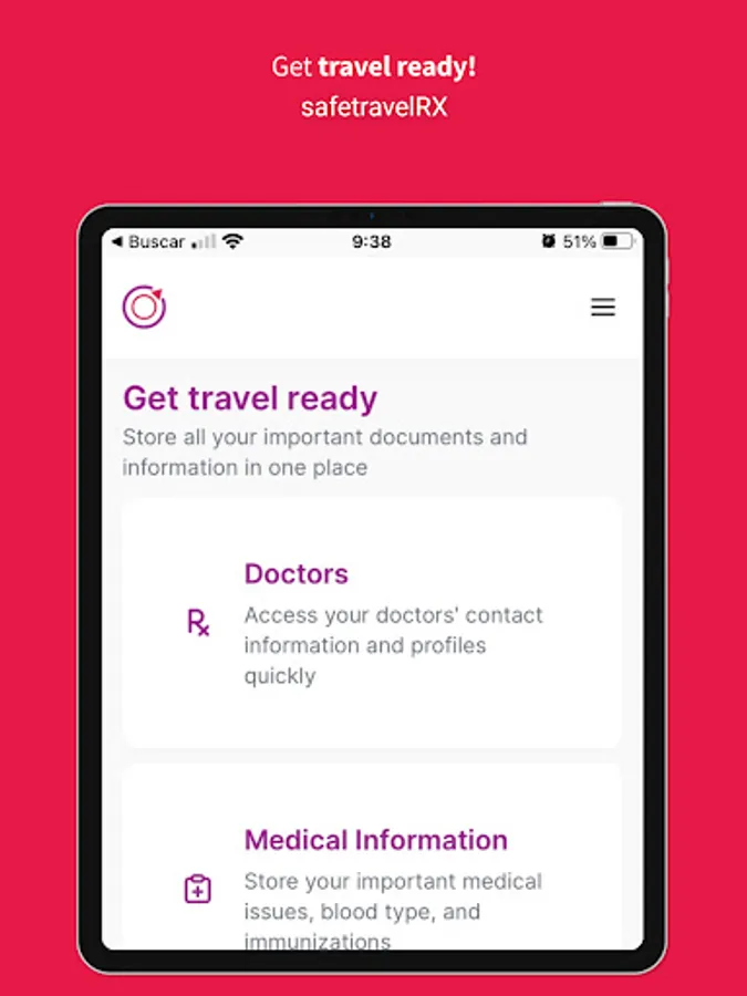 -Securely stores emergency contacts, medical info, travel documents, and health