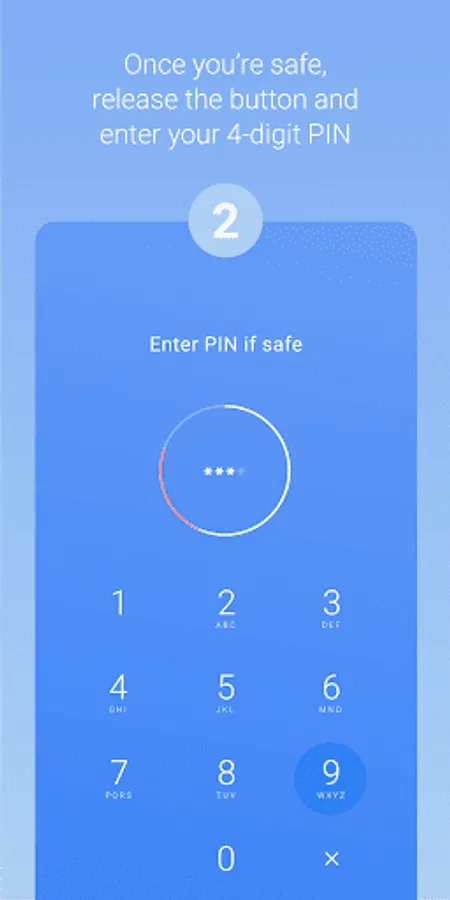 3. In danger? Simply release the button and do not enter your pin. Your local police will be notified of your location and emergency.