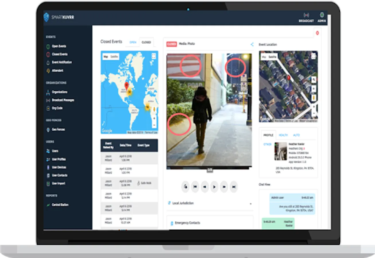 Use Kuvrr to send live video stream, text, audio, real-time location and other vital information to your emergency contacts, organizational safety teams, or Kuvrr monitoring team in emergency situations. Stay connected with your safety team via two-way-chat and receive vital on-going communications via chat or mass notifications.