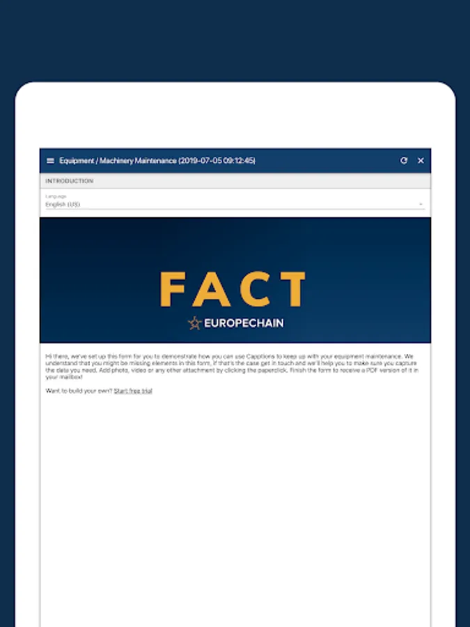 Using the Europechain blockchain, FACT will enable real-time verification, workflow automation and quality assurance. Users can create their own custom checklists, processes and observations.