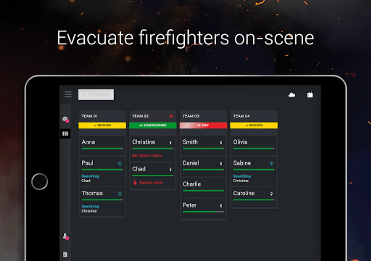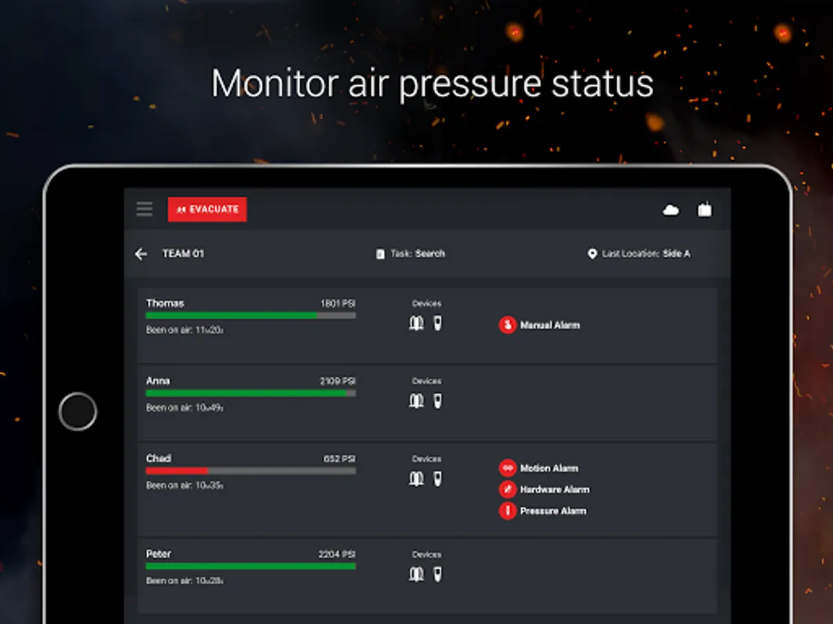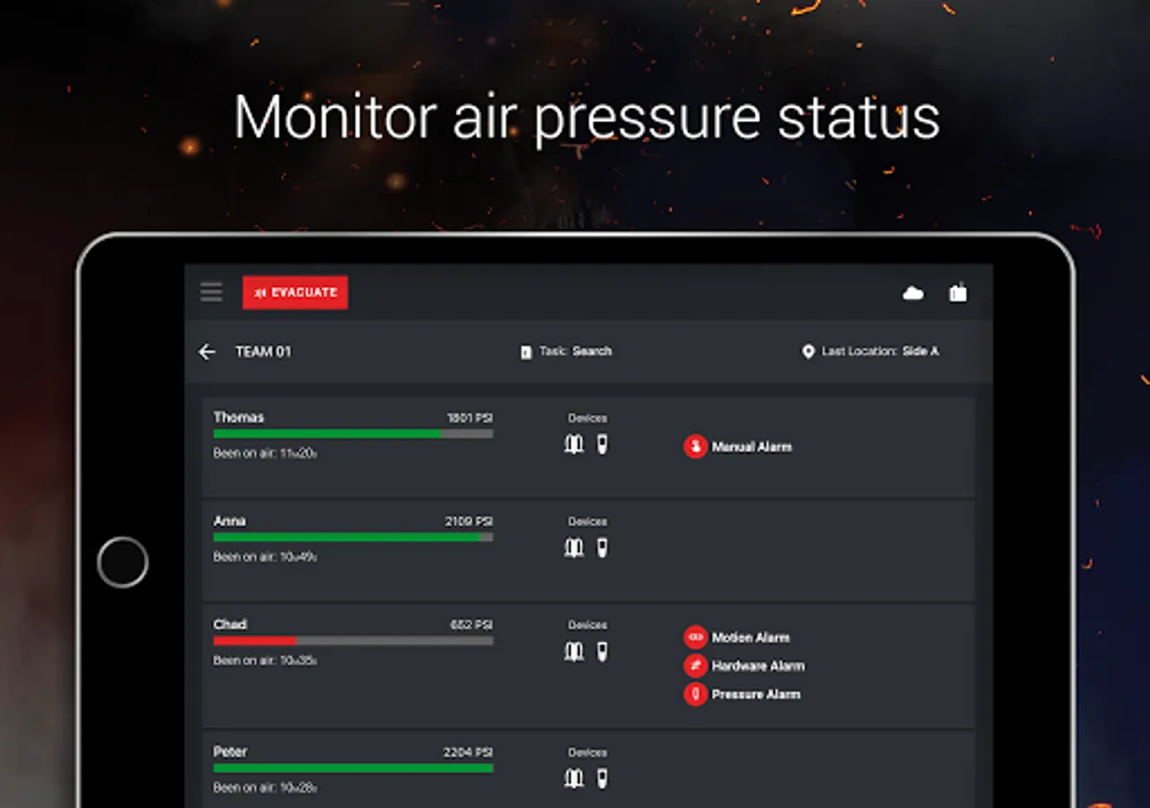 With the use of FireGrid Monitor, Incident Command has complete on-scene visibility with device and incident data through an aggregated dashboard. Incident command will also have control using PAR Check or evacuation to further ensure the safety of all firefighters on-scene. FireGrid Monitor provides live information such as SCBA air pressure, time remaining and alarms all presented in a simplified drag and drop user interface.