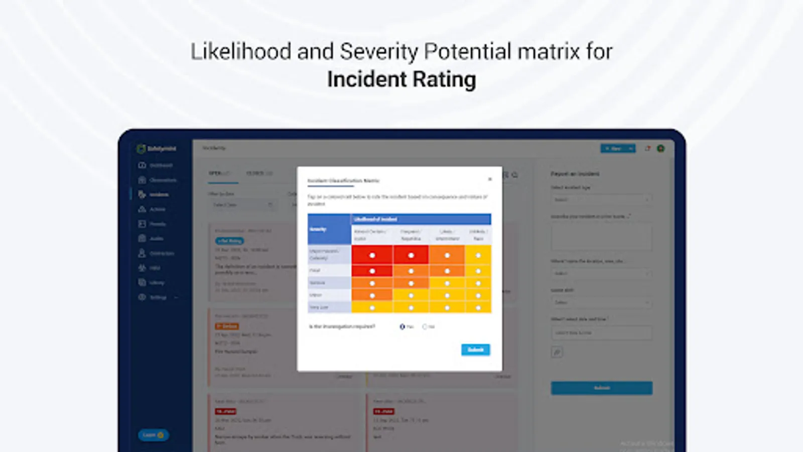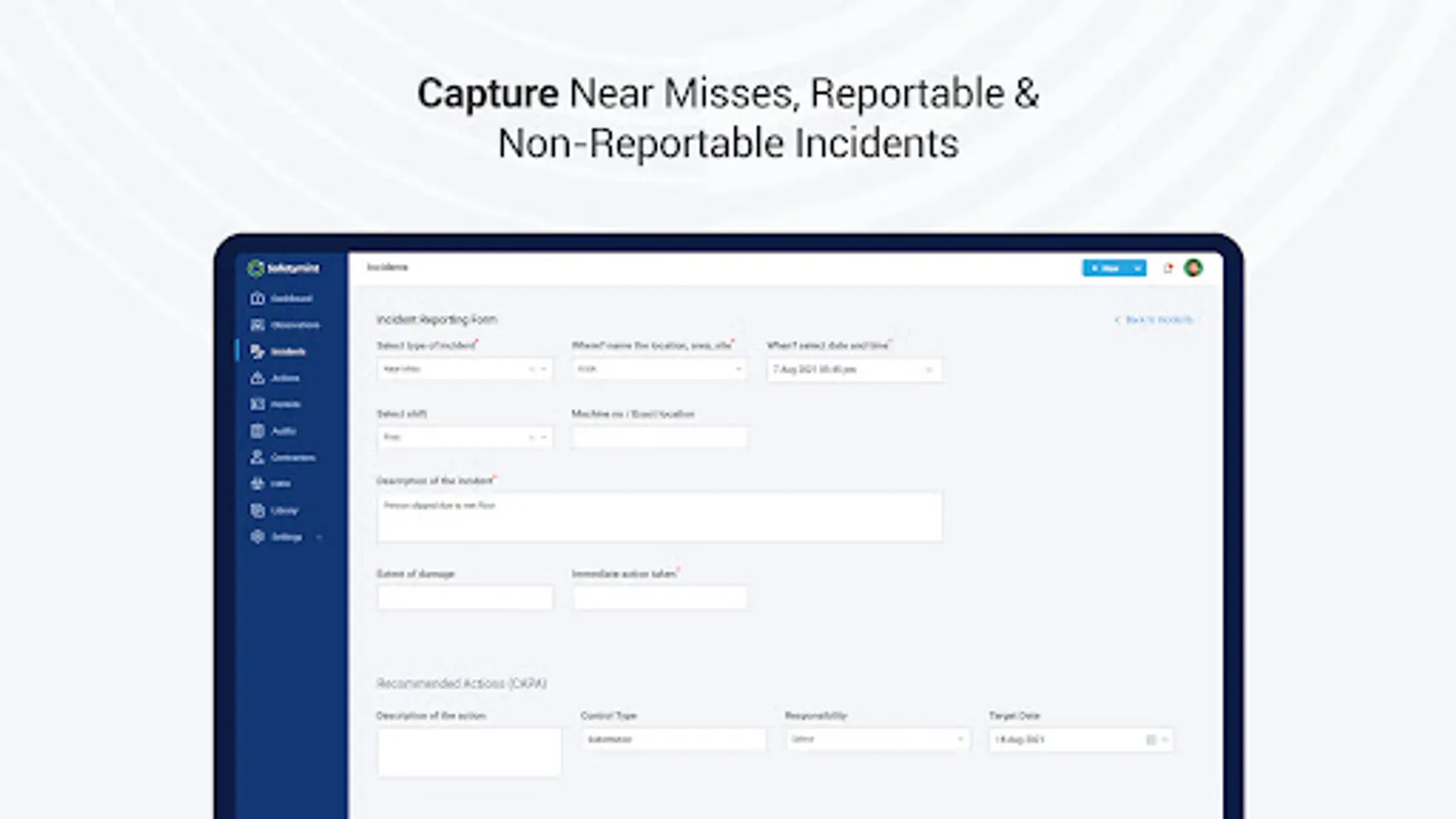 Safetymint’s Incident Reporting and Management module allows for reporting any type of safety Incidents, Observations, Near-misses/Hits, Root Cause Analysis, Hazard Identification and Corrective and Preventive Actions (CAPA). The module also includes Reporting and Trend Analysis of the safety incidents within your organization.