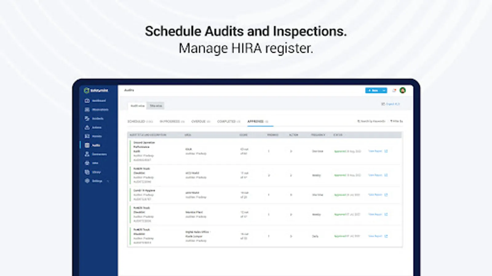Safetymint’s Audits and Safety Inspection app helps you digitize your audit and inspection checklists and automate the audit and inspection scheduling and reporting. Plan, schedule, perform, and publish safety audits or inspections across your organizations with ease.