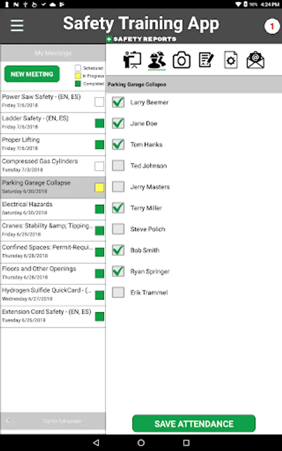 The Safety Reports Toolbox Talk application will greatly streamline your training process. Supervisors (Foremen, Superintendents, Managers, Leads, etc.) can easily open the app, select a topic (for all industry groups) and complete their required training.