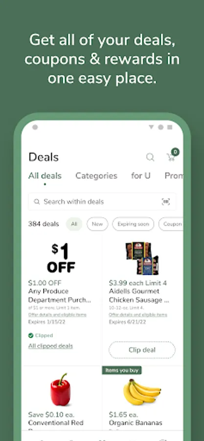 Get all your deals, coupons and rewards in one easy place with up to $300 in weekly discounts. One app for all your shopping needs from planning your next store run, to ordering Drive Up and Go.
