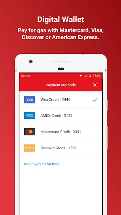 Pay and activate your gas pump without leaving the car. Use in-app payments to pay for gas directly from your phone.