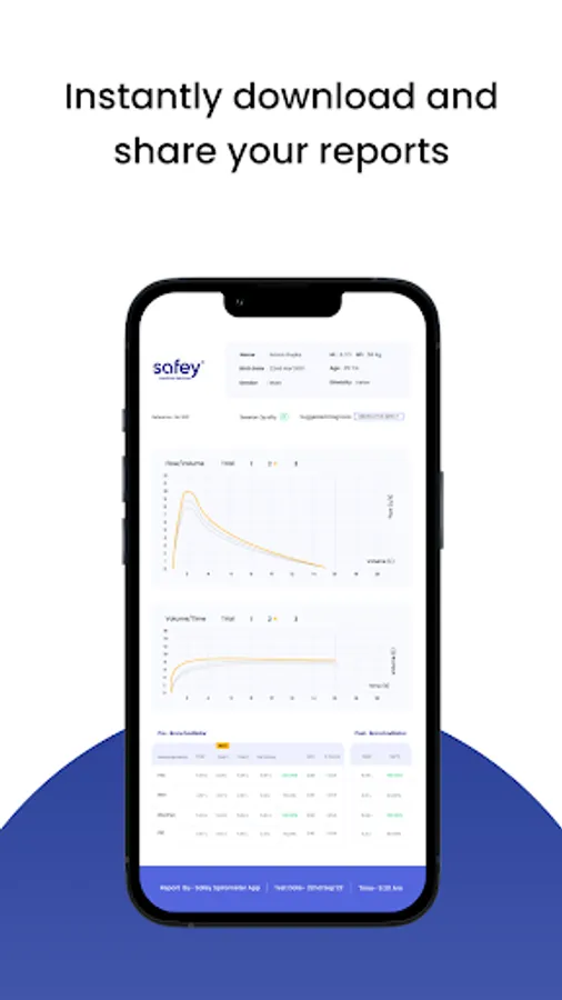 The Safey App communicates with Safey Peak Flow Meter and Safey Pocket Spirometer via Bluetooth. The app is a multi patient use app for Doctors only and depending on the type of device, it will measure following parameters: