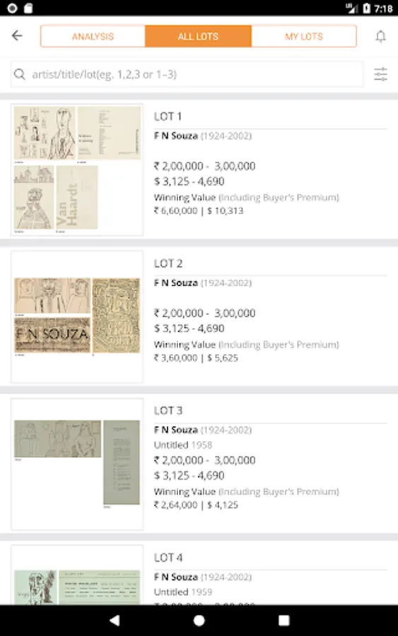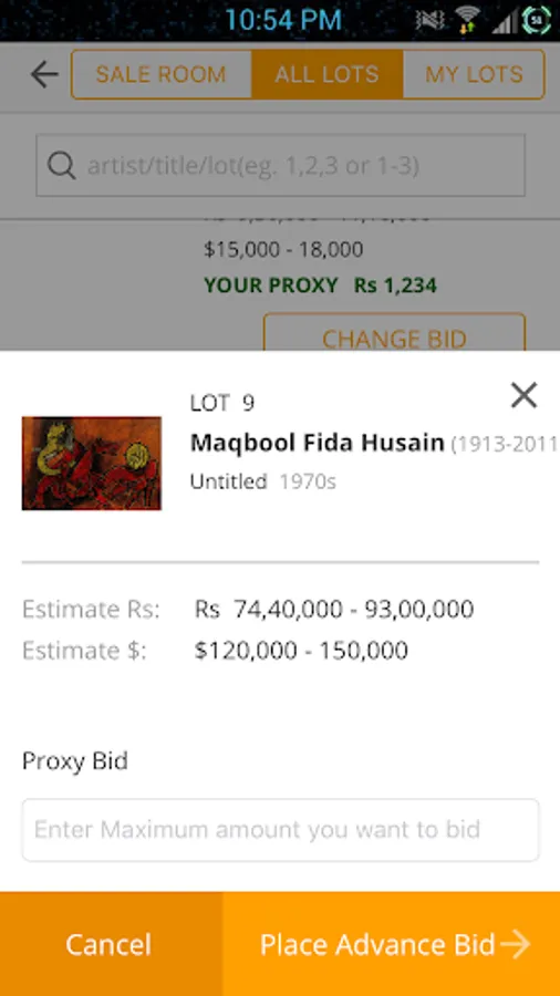 * Add lots of interest to "My Lots" to get reminders when they come up for bidding in a live auction