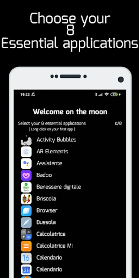 Moon Launcher helps you find focus, you can choose your 8 favorite applications and set up them in your launcher. This applications is also thought to increase the duration of battery on AMOLED displays.