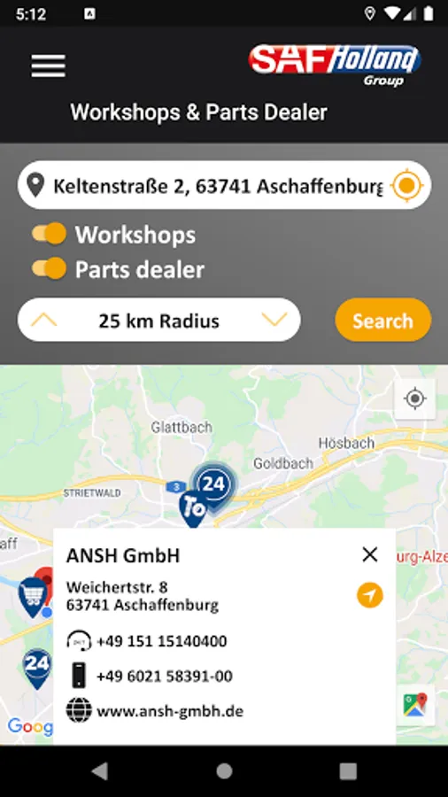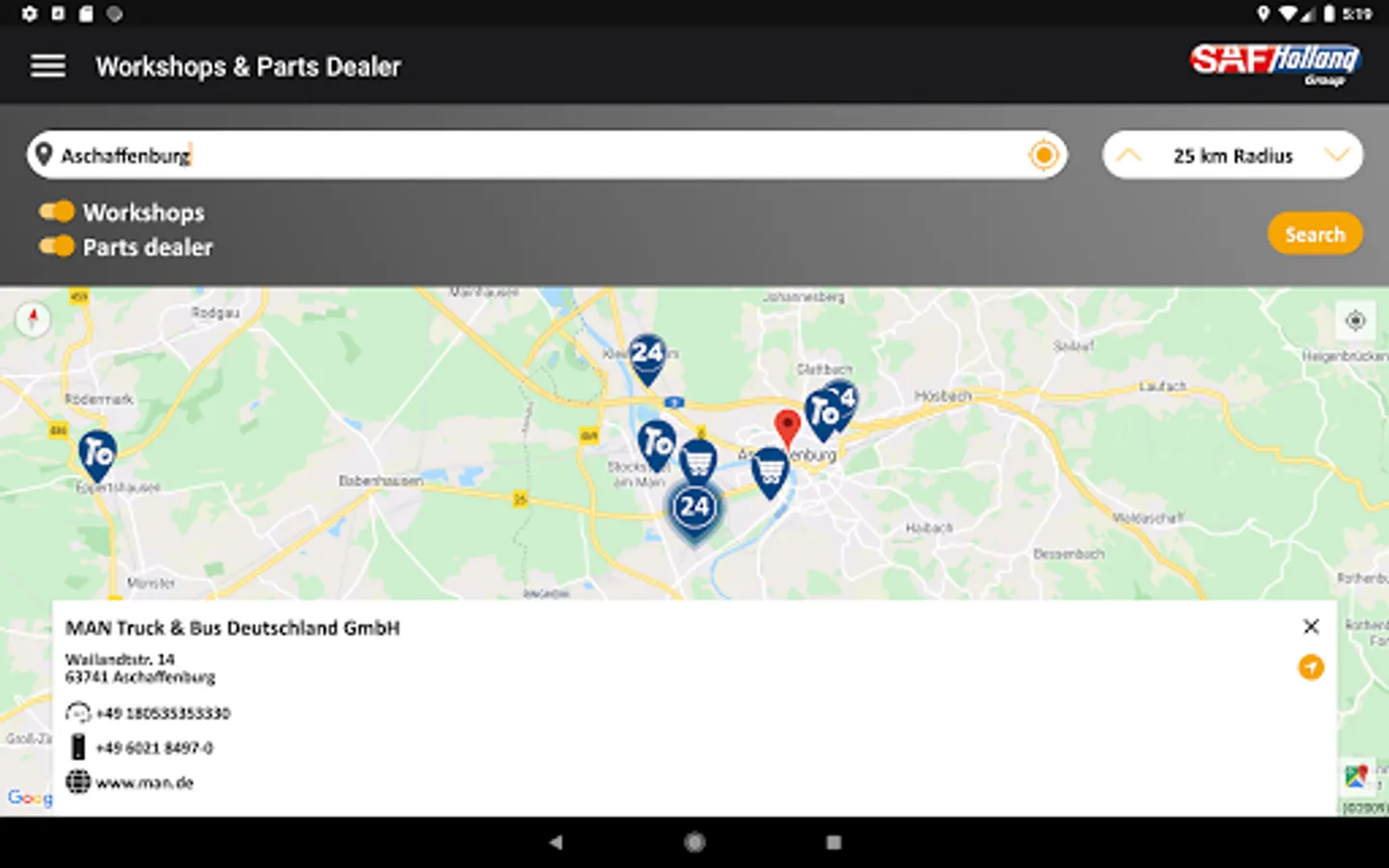 Easily find a nearby workshop or a parts dealer including all the necessary contact information. You are furthermore able to contact the workshop or the parts dealer directly via the contact details displayed or directly plan your route there.
